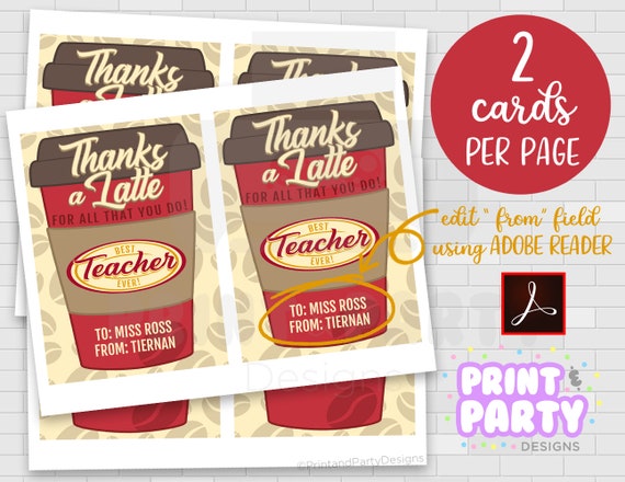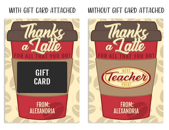 5x7 Thanks A Latte Teacher Gift Card Holder Etsy Canada